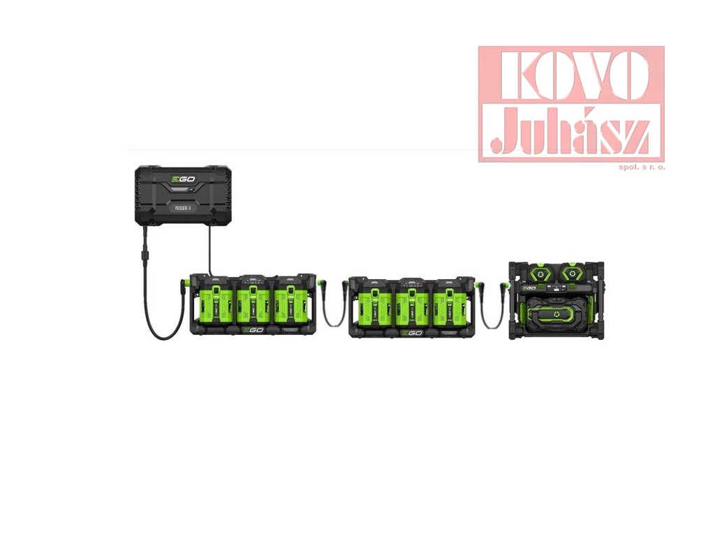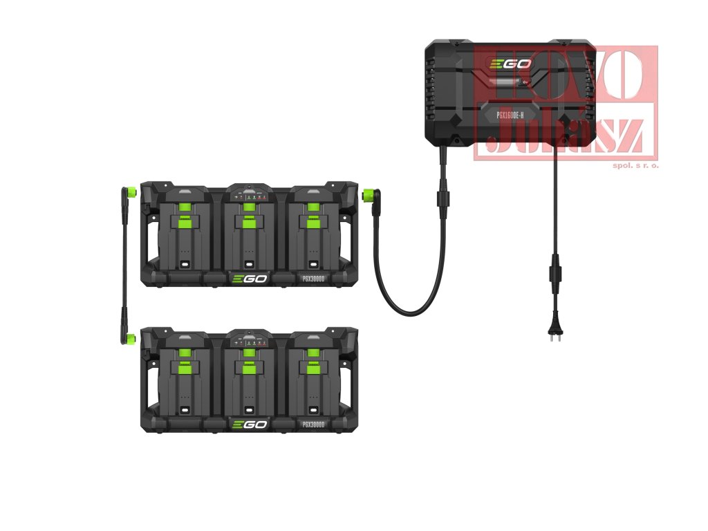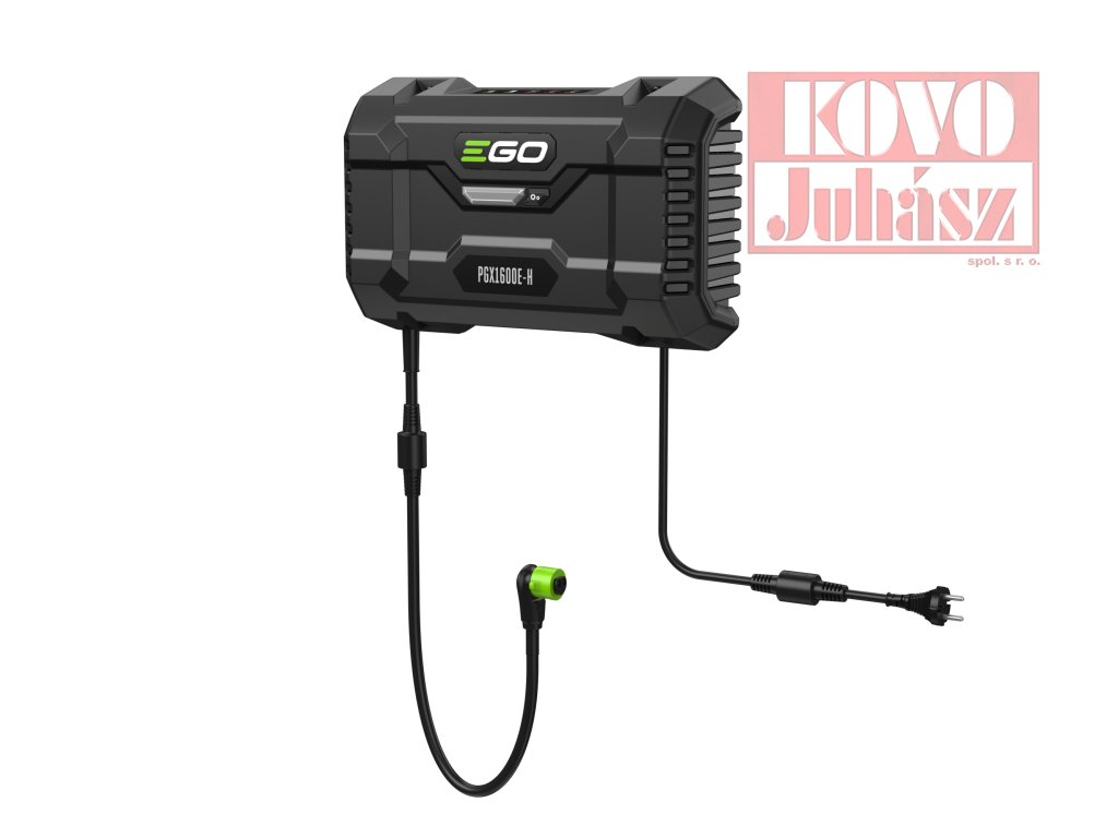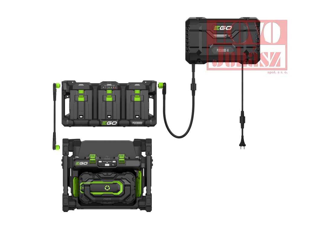 Nabíječka je opatřena nabíjecím kabelem s příslušným konektorem pro připojení nabíjecího adaptéru PGX300D, který je opatřen také nabíjecím kabelem pro připojení druhého, třetího, čtvrtého...adaptéru. Nabíječka je opatřena řídící elektronikou, která naprosto samostatně vyhodnotí stav baterií a automaticky zvolí režim nabíjení, dobu nabíjení a nabíjecí proud. Stav baterie a aktuální stav nabití je indikován LED diodami na panelu. Nabíječka je tak plně automatická bez jakéhokoliv nutného zásahu ze strany uživatele. Takže firma, využívající celou flotilu více strojů EGO, tak např. přes noc nabije současně celý počet baterií, které pokryjí výkon potřebný pro celodenní práci všech strojů. Přes Bluetooth rozhraní je možnost připojení na dálku pomocí EGO Connect aplikace, což umožňuje uživateli nejenom sledovat výkon stroje ale také hlídat aktuální stav baterie tak, aby byla včas připravena k práci.