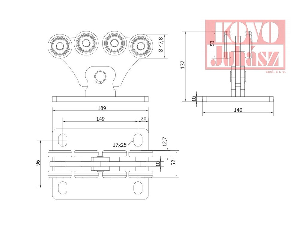 Vozík k C-šíně 70mm pro posuvnou nesenou bránu