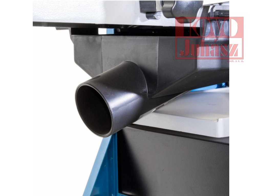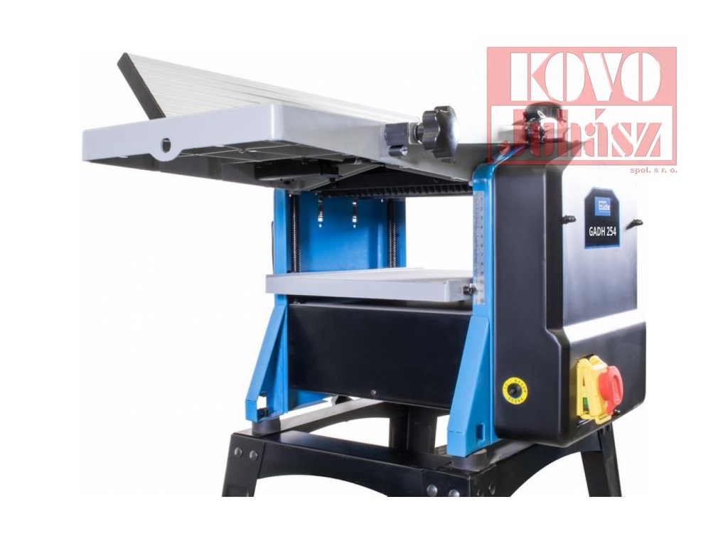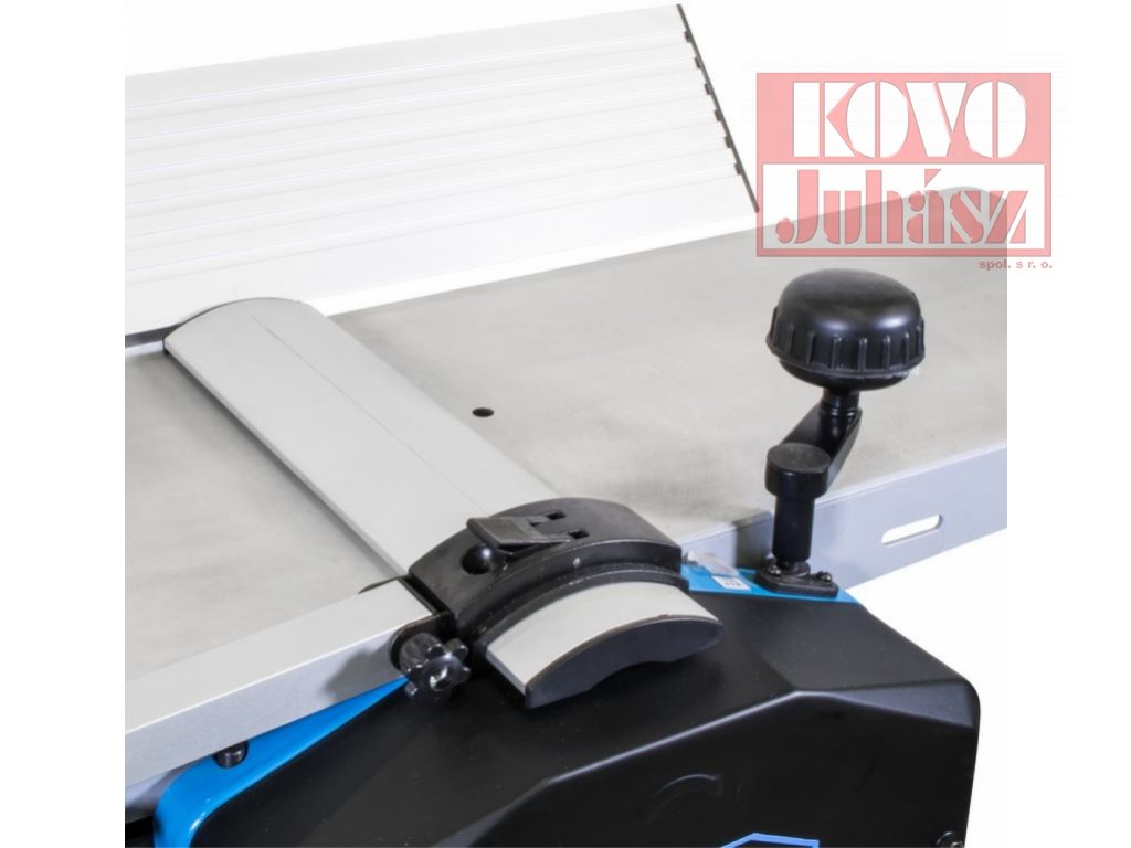 Konstrukce: hliníkový hoblovací stůl (→ d x š: 920 x 264 mm), ochranný kryt nožové hřídele, výsuvná opěrka obrobku, HSS řezné nože (2), přípojka odsávání, robustní ocelový podstavec.