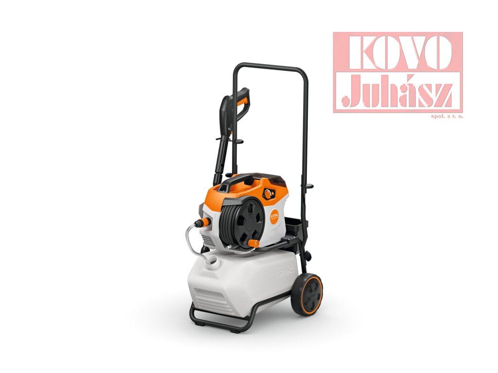 Vozík s nádrží na vodu umožňuje rychlý a nezávislý provoz vysokotlakých čističů STIHL REA 60 PLUS a STIHL REA 100 PLUS na baterie bez připojení k vodě nebo elektřině a také pohodlnou přepravu zařízení a nádrže na vodu.