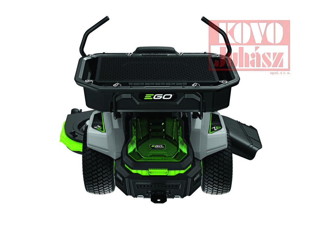 Zahradní rider EGO Z6 s nulovým poloměrem zatáčení lze opatřit odkládacím boxem na drobnosti a příslušenství.