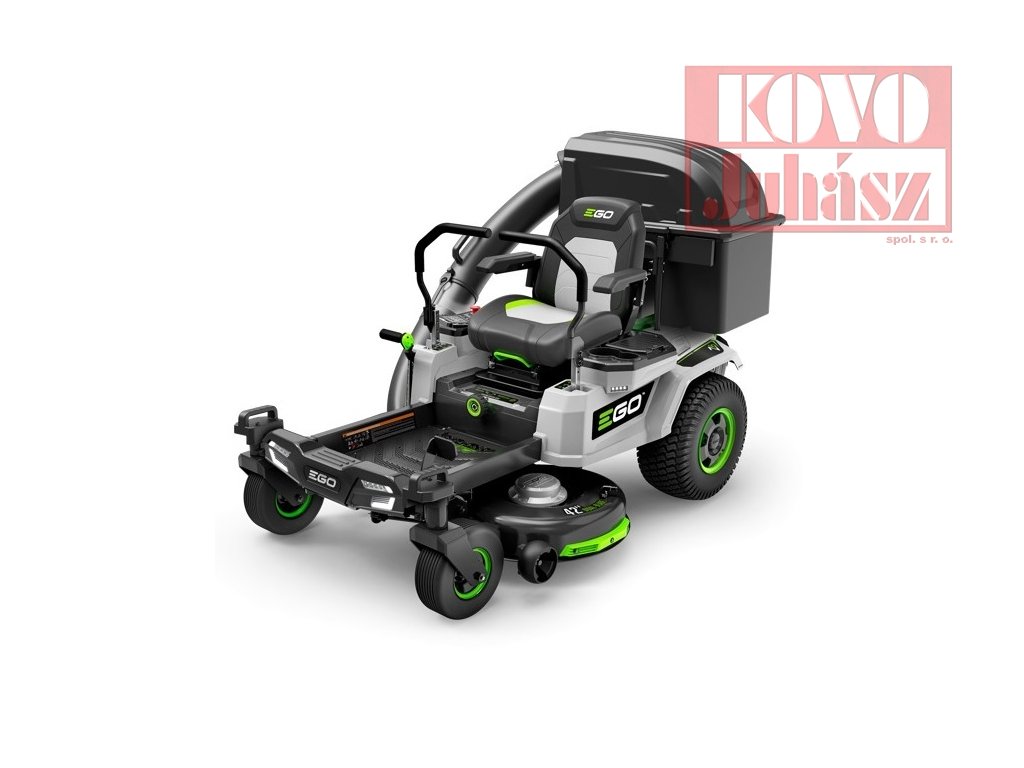 Zahradní rider EGO Z6 s nulovým poloměrem zatáčení lze využít i pro sekání trávy se sběrem posekané trávy do sběrného boxu.
