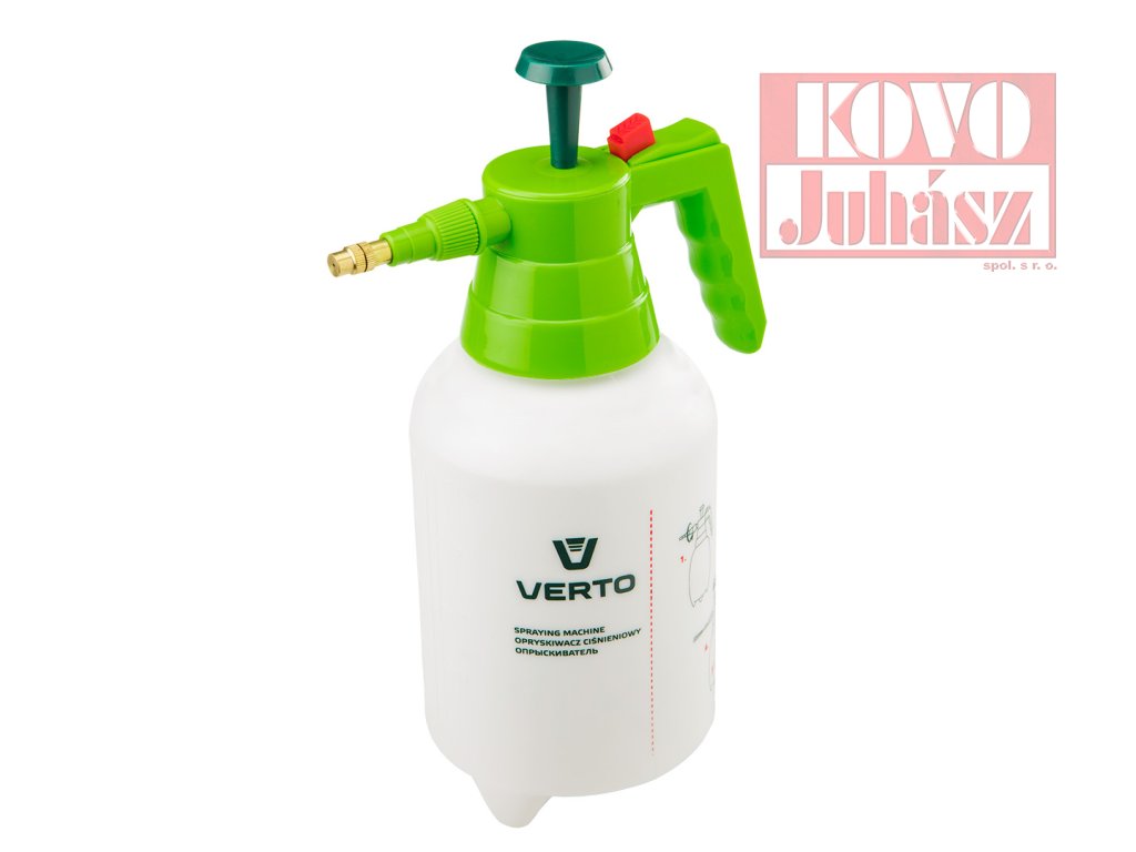 Tlakový postřikovač VERTO (ref. č. 15G502) o objemu 1.5 litru. Pracovní tlak 2 - 2.5 bar. Blokování průtoku zvyšuje pohodlí při práci. Postřikovač lze použít v rozsahu teplot od 0 do + 45 °C.