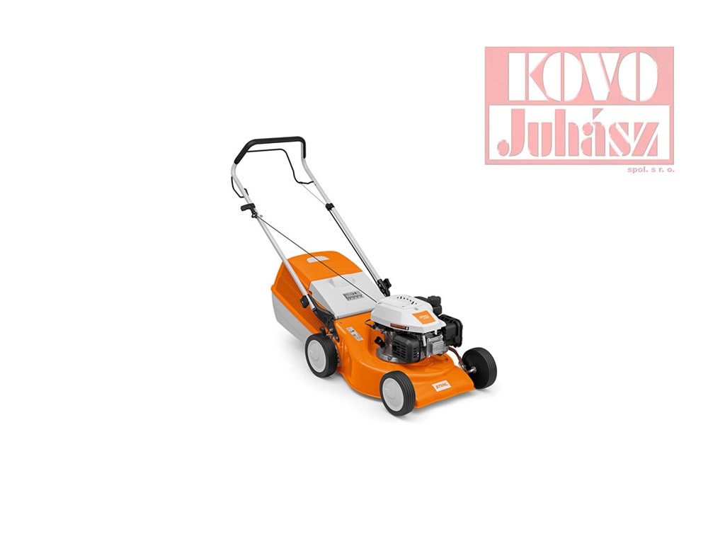 STIHL RM 248 benzínová sekačka vhodná pro středně velké plochy, šířka záběru při sečení 46 cm. Sekačka má plechové šasi.