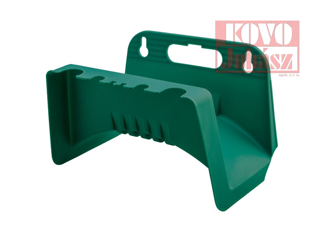 Nástěnný věšák na zahradní hadici VERTO . Věšák je vyrobený z pevného plastu. Na věšák je možné navinout kolem 20 m 1/2“ hadice.