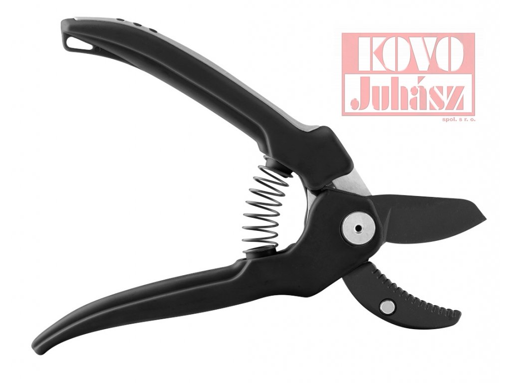 Kovadlinkové nůžky, nastavitelná rozteč, celková délka 185 mm, maximální průměr střihu 15 mm, nastavitelná rozteč čepelí, čepele s nepřilnavým povrchem, ergonomická rukojeť s měkkými prvky, kovadlinkové ostří na tvrdé a suché dřevo,