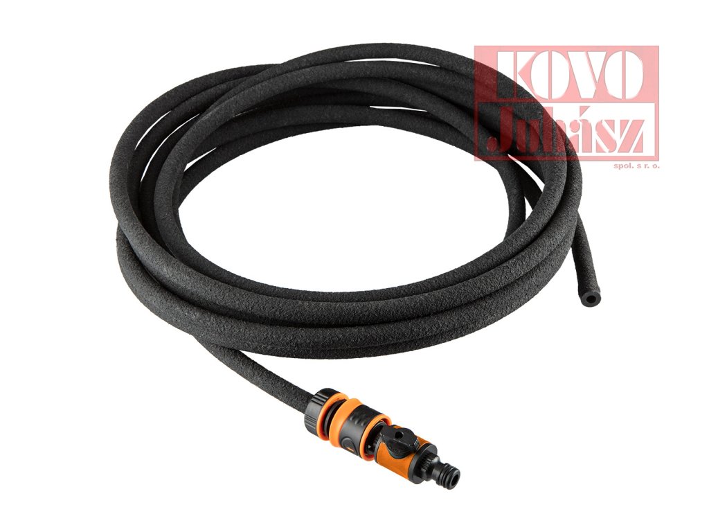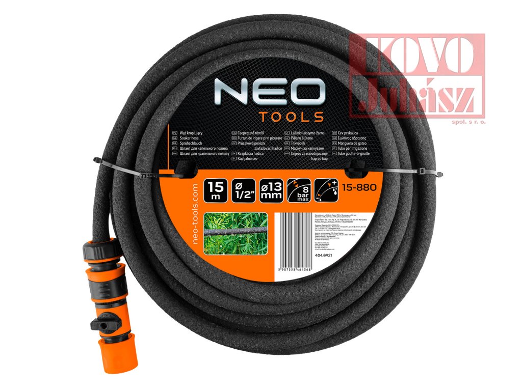 Kapací hadice 15 m, průměr 1/2", ideální pro přesné a neviditelné zavlažovací systémy, připojení zahradní hadice, vybavená uzavíracím ventilem Kapací hadice NEO 15 m (ref. 15-880) je ideální pro přesné a neviditelné zavlažovací systémy. Hadice umožňuje úsporné a přesné zavlažování rostlin na zahradě. Zaručuje rovnoměrné rozložení vody po celé délce. Sada je vybavena přípojkou na zahradní hadici 1/2" a uzavíracím ventilem.otočný buben s hadicí 20 m + 2 m; pracovní tlak 10 bar, připojení na stěnu, robustní konstrukce, vše pogumované, pracovní teplota -5 až 55 °C